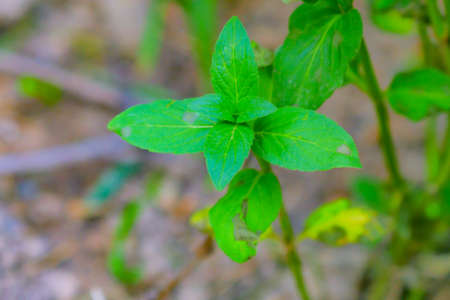 Orthosiphon aristatus green leaf in the garden, medicinal tree.
