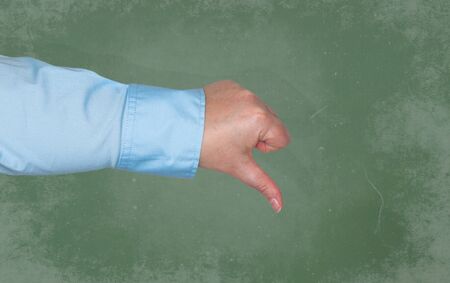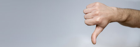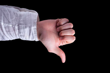 Close up image of male hand showing thumb down.