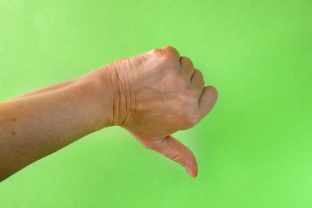 Close up of female hand showing sign of dislike.