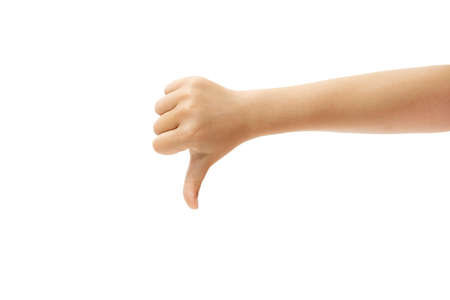 Image of human hand showing thumb down in isolation