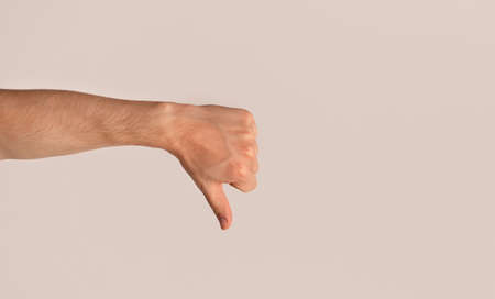 Doing something bad or wrong, gestures and symbols concept. Man hand making thumb down gesture
