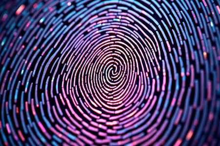 Digital Fingerprint Biometric Identity Security Concept with Blue and Purple Abstract Pattern