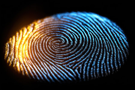 Close-up of fingerprint with light reflections, biometric security concept