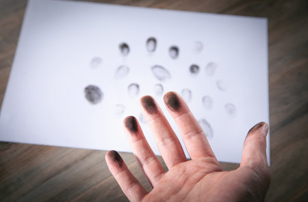 putting fingerprints on a paper close up ,