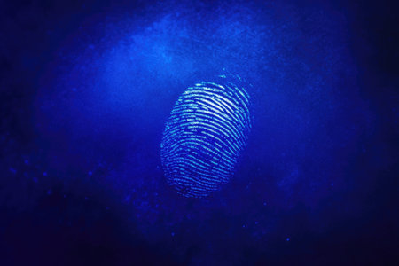 Fingerprint leaving visible ridge patterns on a smooth surface, representing global identity, forensic evidence, crime investigation, security, authentication, and unique personal identification