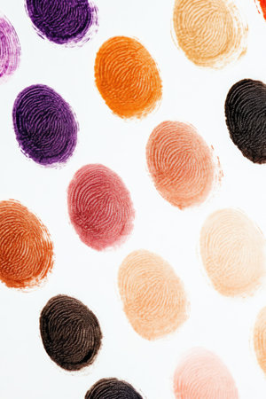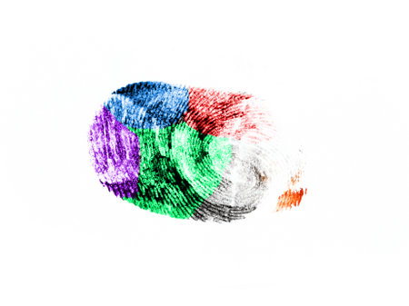 Close-Up of Colorful Fingerprints on White Background