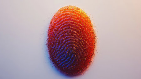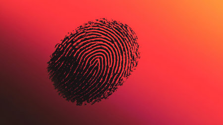 This abstract image features a detailed fingerprint set against a vibrant gradient background, symbolizing themes of identity and security.
