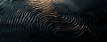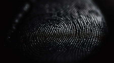 An intricate pattern of ridges and valleys emerges vividly against a deep, shadowed backdrop, revealing the uniqueness of human identity.