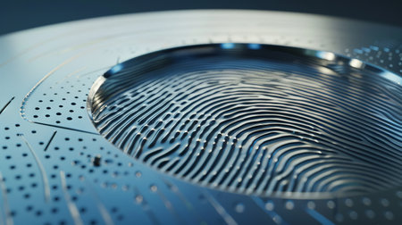 Intricate fingerprint sensor design showcased on a circuit board with a high-tech aesthetic in a modern setting