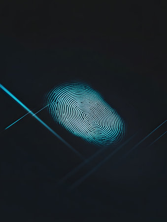 Shimmering Cyan Fingerprint Design on Midnight Blue Backdrop