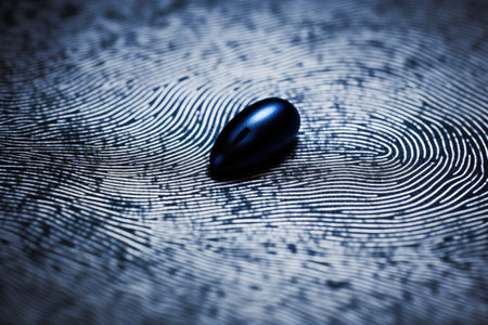 Fingerprint on a wet surface, with a blue background, AI