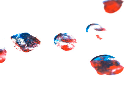red oil paint fingerprint on white paper