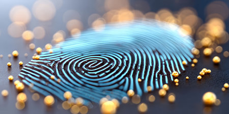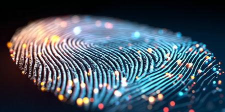 Close-up of fingerprint with light reflections, biometric security concept