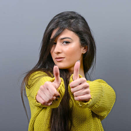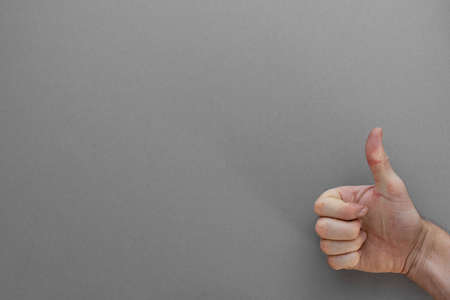 Close-up showing thumb-up expressing positive estimation.Approval concept