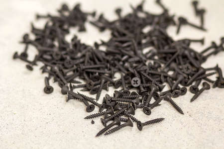 A handful of self-tapping screws for wood. Construction abstraction. Industrial background.