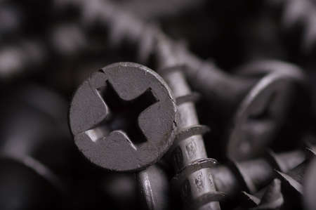 Steel self tapping screws, close up, tinted, shallow depth of sharpness