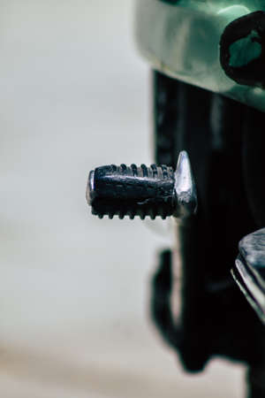 Limassol Cyprus May 24, 2020 Closeup of an old Vespa scooter parked in the streets of Limassol in Cyprus island