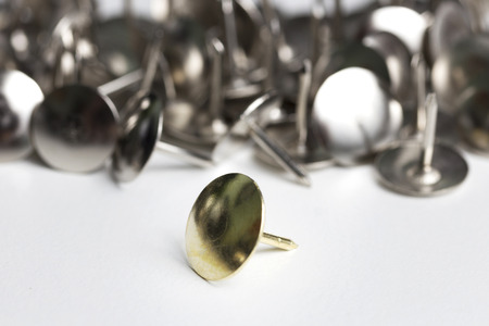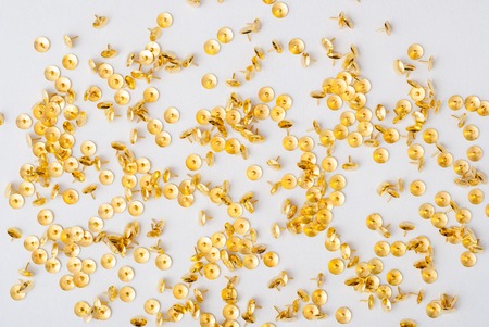 golden pins. stationery concept. copy space. isolated. High quality photo
