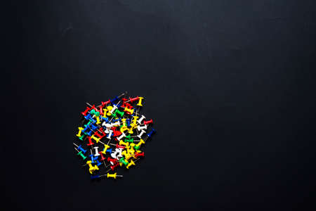Yellow push pins on dark background. Business concept, goal setting and achievement, team building