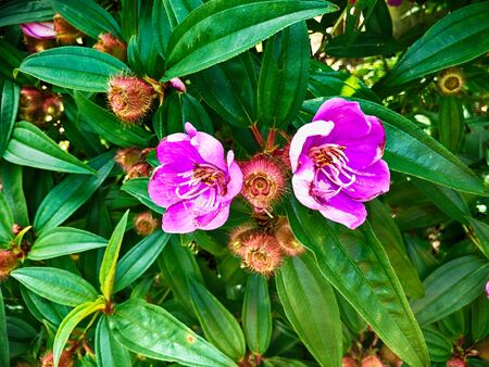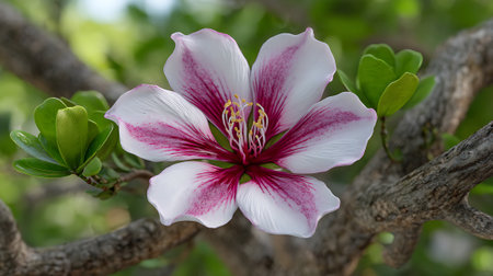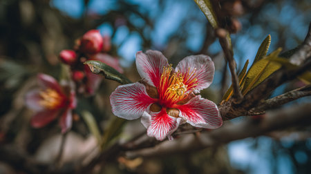 Stunning tropical flower in full bloom on a branch, nature's elegance