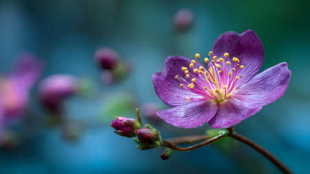 Delicate purple flower blossoming against a blurred blue backdrop.
