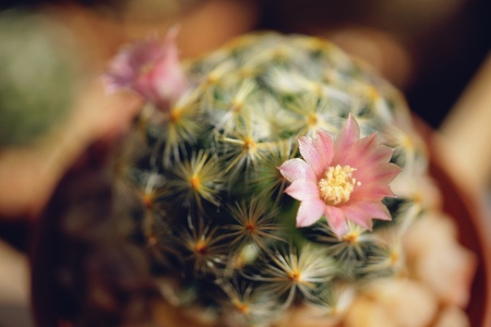 Little beautiful cactus on pot ,hipster tone , selective and soft focus