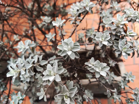 Close-up of some yellowish succulent leaves of portulacaria afra on a branch