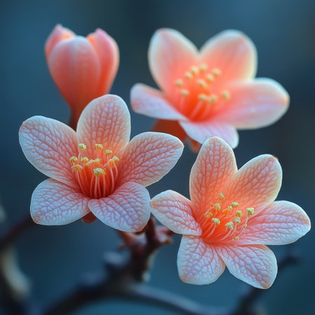 Exotic Flowers in Warm Hues on a Delicate Branch