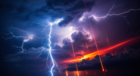 AI Generated. The fearsome beauty of a dramatic lightning storm across the night sky