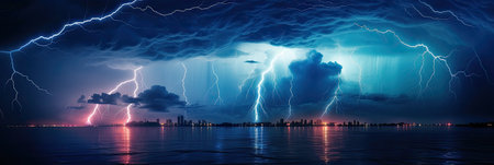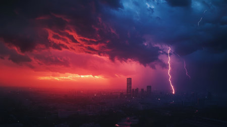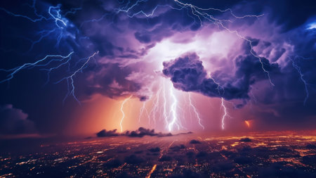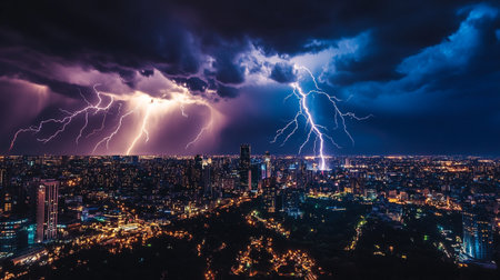 A lightning storm over a city, highlighting the power of natural phenomena.