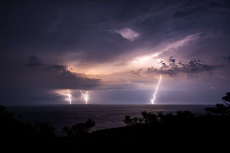 Several lightning bolts during a thunderstorm over the Black Sea.