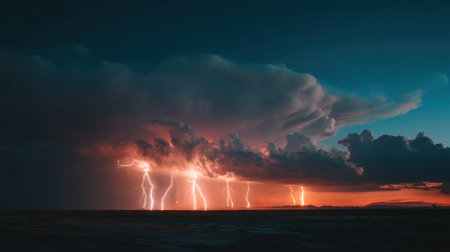 AI Generated. Dramatic Storm Clouds with Lightning at Dusk