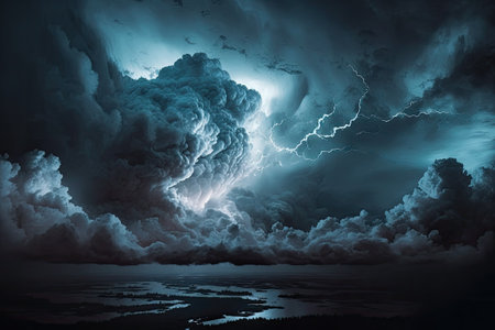Dramatic beauty lightning storm illuminates dark sea clouds in a powerful display of nature s force