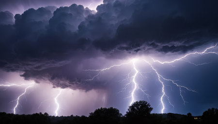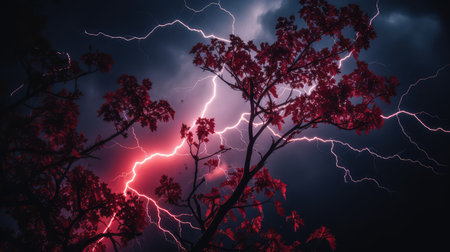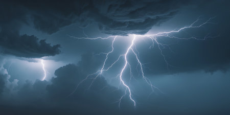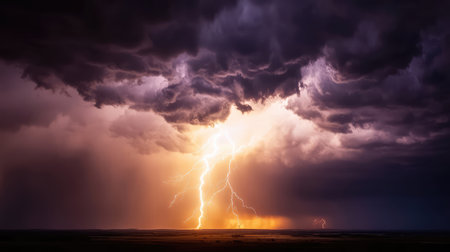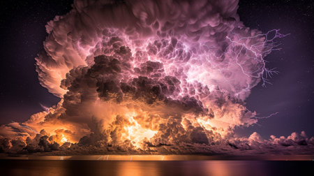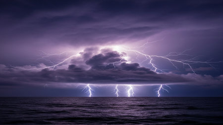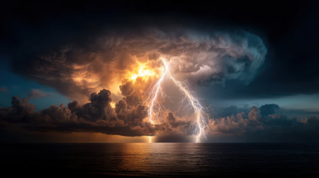 Dramatic beauty lightning storm illuminates dark sea clouds in a powerful display of nature s force