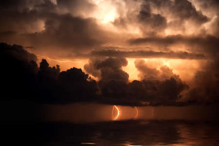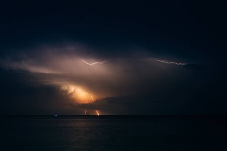 Thunderstorm over the sea. Dramatic stormy sky with lightning