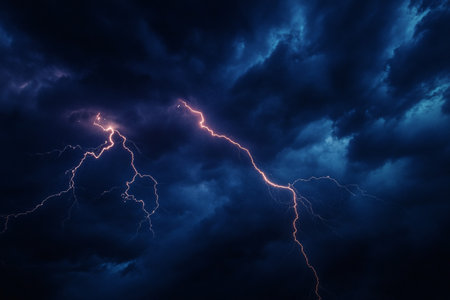 A breathtaking view of intense lightning illuminating dark storm clouds, showcasing the raw power of nature in a dramatic display perfect for mood and atmosphere.