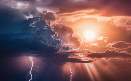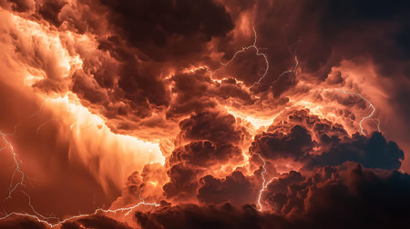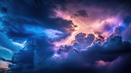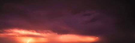 Dramatic sky with stormy clouds and lightning. Nature background