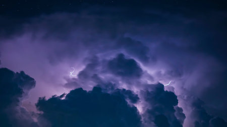 Thunderstorms are massive clouds with thunder and lightning discharges in the sky