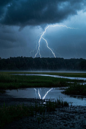 Lightning landscape in the wild during thunderstorms