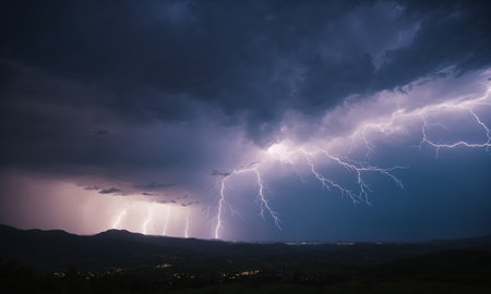 A lightning storm over a city, highlighting the power of natural phenomena.