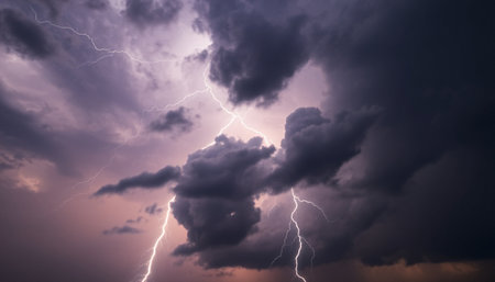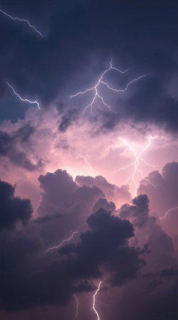 Intense Lightning Storm Over Dark Clouds