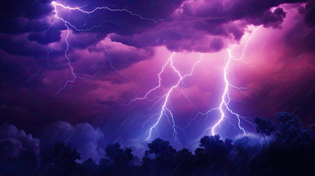 Purple sky with spectacular lightning bolts