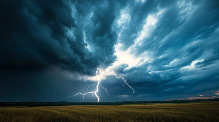 A powerful lightning storm illuminates the sky, creating a stunning display of nature's raw energy