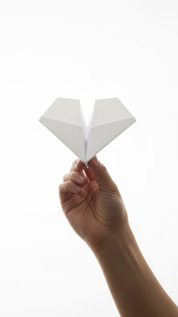 Origami paper airplane flying across a clear blue sky, with a trail forming soft white lines generative ai