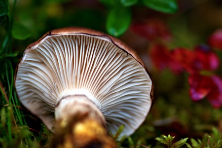 Mushroom and Moss in the forest. Vintage outdoor photo