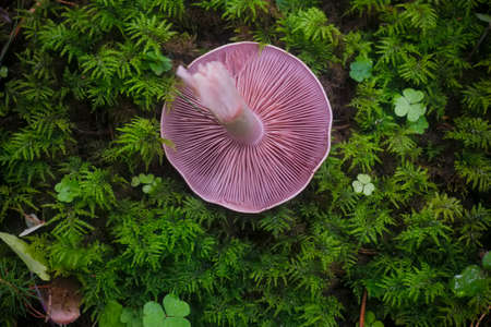 Purple macro closeup mushrooms. Botanical forest. Generate Ai
