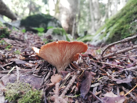 Exploring the intricate textures and colors of wrinkled mushroom caps in nature