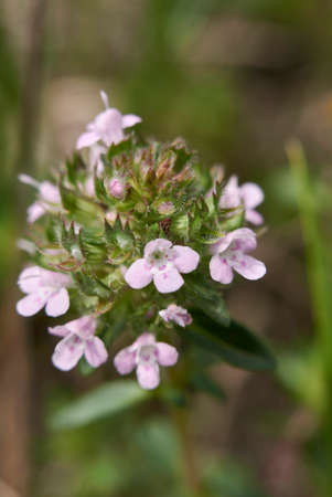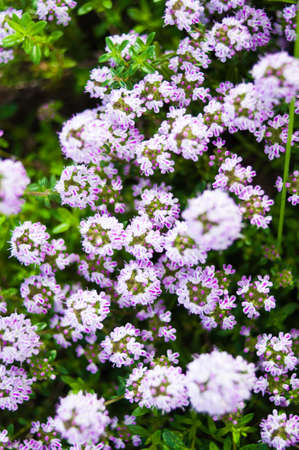 The beautiful small flowers of thyme close-up.