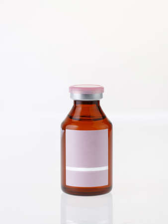 Harm, danger of vaccine and vaccination against coronavirus concept. A container with a vaccine and warning labels.