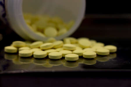 vitamins, tablets and pills lie on a black background. medicines are on the table. pills on a black background.